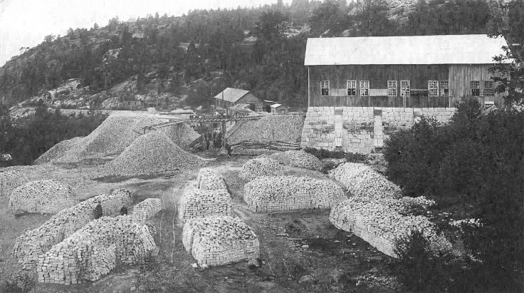 / Knottfabrik i Halden, Norge (gatestensfabrikk). Foto: Halden historiske samlinger