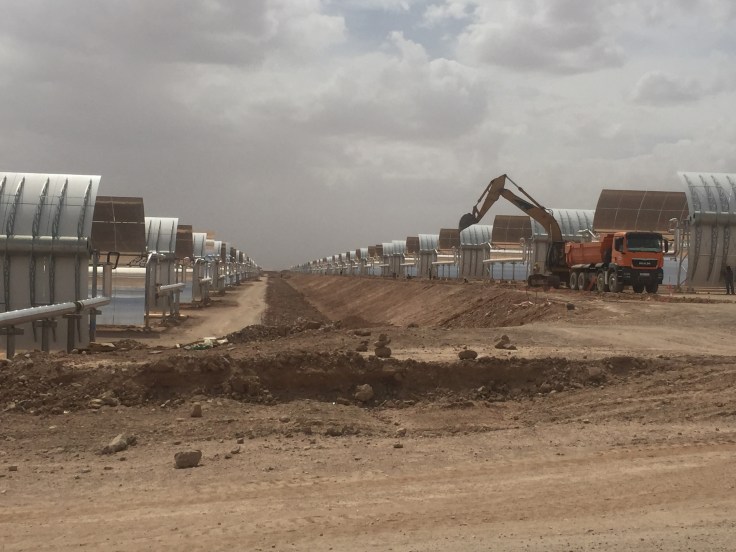But blink and it’s gone and I’m looking at what’s really there: money. A lot of it: 2.4 billion euros. Energy: when it’s complete, 580 megawatts’ worth in total, and almost continuous production. Ambition: it will become not just the African continent’s biggest solar construction, but the world’s.
