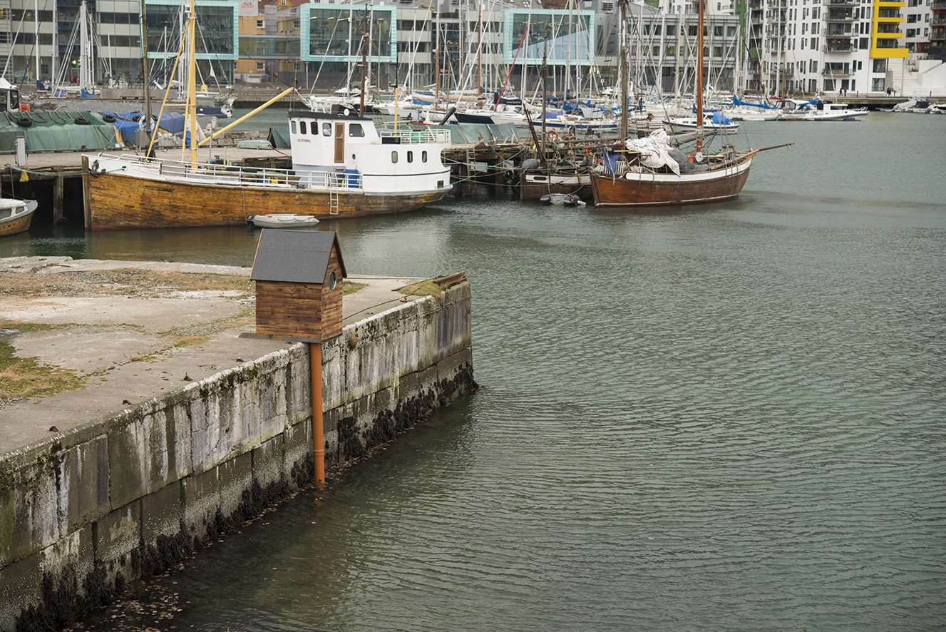 The first part of the project showed the mareograph station placed on the Årstad quay at the conduit between the inner Puddefjord and the lake Store Lungegårdsvannet in Bergen between 11 and 14 January 2018. The second part of the project is a thematically related seminar and a presentation of the ceramically fired measurement cylinders in April at the public library in Bergen.