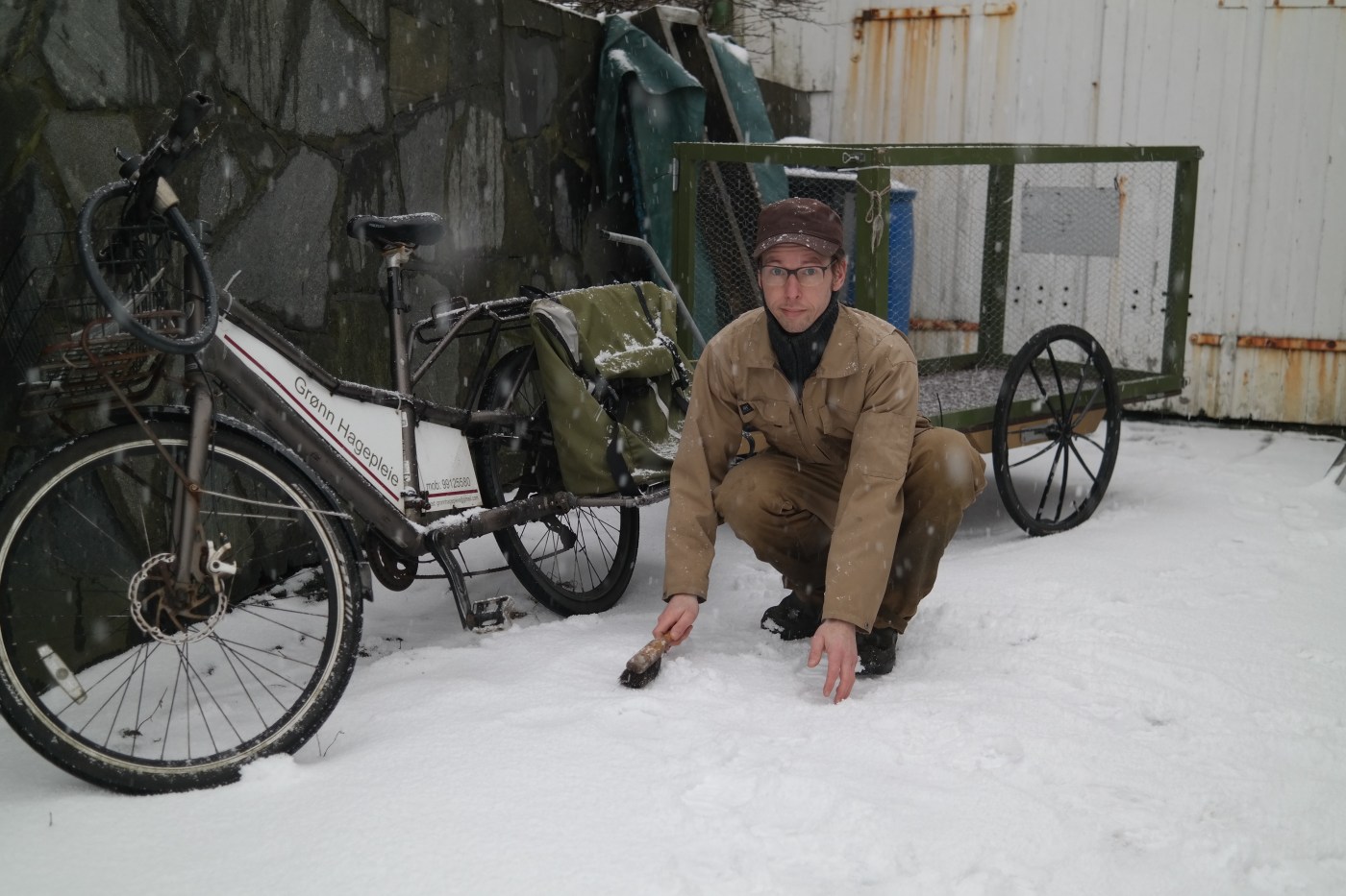 Kristen Rønnevik driver Grønn Hagepleie, hvor han pleier og vedlikeholder hager og borettslag i sitt nærområde i Haugesund som en utvidet del av sin kunstpraksis.