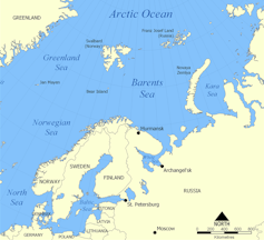 A key Arctic region for Atlantic Water heat exchange with the atmosphere is the Barents Sea. Atlantic Water flowing east through the Barents Sea Opening – between Bear Island, and northern Norway – remains exposed to the atmosphere as it circulates through the central Barents Sea. It gradually cools and becomes fresher (due to sea ice melting) as it moves eastwards to the Kara Sea.