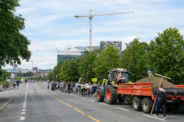 At high noon, farmers gathered at the Oslo Botanical Gardens joined by city dwellers. Tractors, horses, wag-ons, wheelbarrows, musical instruments, voices, sheep, boats, backpacks and bikes processed to Losæter where the farmers’ soil offerings were laid out upon the site and a Land Declaration was signed.