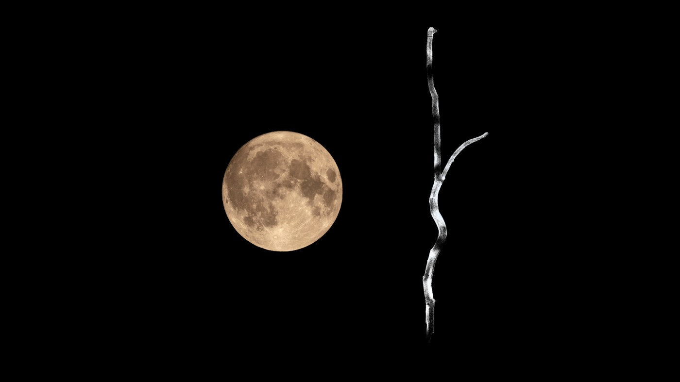 Jeg var overbevist om at det kunne lade sig gøre. Mit kamera er ikke verdens bedste, men heller ikke verdens dårligste. Selv i mørke kan det ofte tage interessante billeder. Selvfølgelig skulle jeg tage billeder af fuldmånen. Omkring halv elleve sejlede den op over horisonten og hang dekorativt omfavnet af de sorte træer. Jeg forsøgte to nætter i træk. Til sidst ville naboens hund ikke finde sig i denne uorden mere og bestemte sig for at vække nabolaget med sine højlydte, kritiske kommentarer. Jeg så skuffet de mange billeder igennem; der var en del interessante fejl og spontan impressionisme, men jeg endte alligevel med at aflyse projektet. Det alternative – og mere interessante – projekt, at gå ind i den mørke skov uden kamera, blev heldigvis også aflyst.
