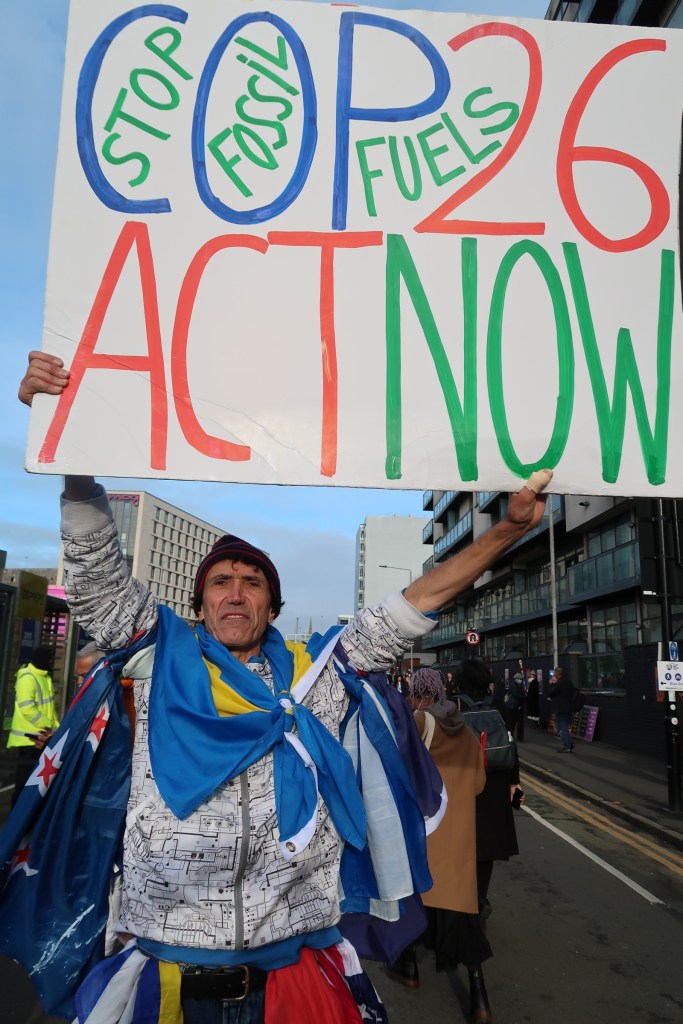 COP26 har vært omgitt av aktivisme, også tidvis inne i blåsonen. Individuelle protester av Jean-Baptistes type forekommer hyppig. Har han noen tro på å stresse armmuskulaturen til det ekstreme? Vel, det er hans måte å søke oppmerksomhet på for det helt sentrale spørsmålet under toppmøtet: fase ut kull og olje/gass eller ikke; nå eller i en ubestemt framtid. Stanse statlige oljesubsidier, slik Danmark og en rekke andre stater vil, men ikke Norge. I et innspill til denne debatten, skriver Wedonthavetime.org at verdens regjeringer subsidierer fossil industri med elleve millioner – per minutt. Det betyr mer enn 200 milliarder bare i løpet av toppmøtet. Og dobbelt så mye som løftene om 100 milliarder dollar per år til klimatilpasning for sårbare land. Og de løftene er ikke en gang innfridd!