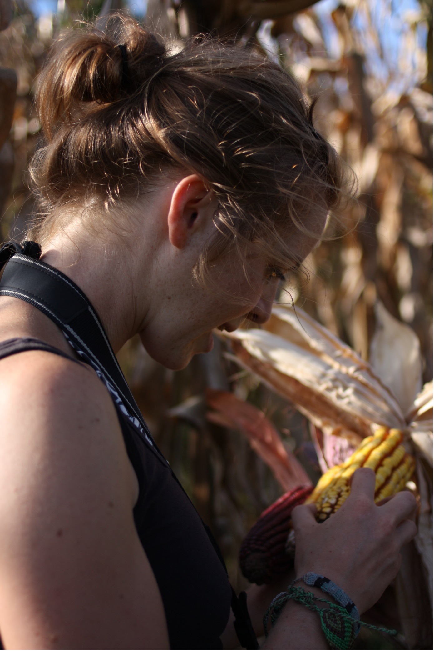 Det kreves erfaring for å plukke ut de maiskolbene som skal bli neste generasjons avling, og derfor gjør man det ofte sammen med barna, slik at de skal lære. Det er en handling som er ladet av framtid.