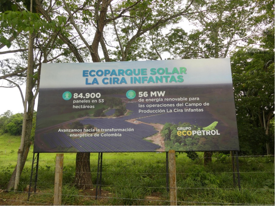 / The solar park at La Cira Infanta, run by Ecopetrol. (Maxy Guez / Jacobin)