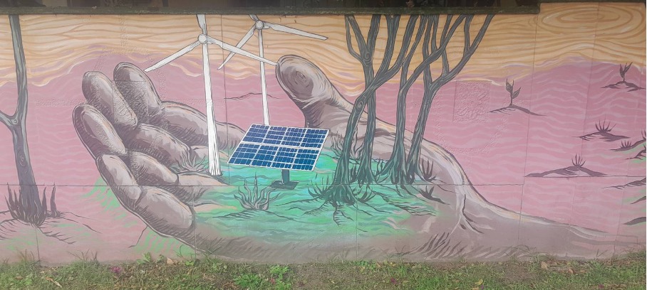 But in Colombia’s trade unions — highly politicized, after a century of militant agitation and rounds of civil war — more progressive currents run strong. The leadership of USO has not gone unchallenged in its support for fracking. A powerful opposition has aligned itself with Petro’s agenda. At the Aury Sará center in Bogotá, named after a USO leader martyred in 2001, a mural depicts an outstretched hand, out of which grows trees and solar panels and wind turbines. This branch of USO has just sponsored a seminar on ecofeminism. We speak to Juan Carlos Aguilar, a member of the USO national commission for the human rights of workers. Having worked at the refinery in Barrancabermeja for twenty-six years, he has no love lost for the oil business. “The energy transition is necessary, simply because we are exceeding the limits of balance in this world. Oil exploitation might have brought great wealth to some sectors of society, but it has also brought great poverty, violence and pollution, and none of this has been compensated for by the industry,” he says.