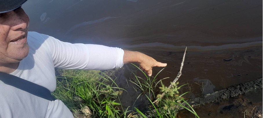 / A Fedesepan activist showing polluted water. (Andreas Malm / Jacobin)