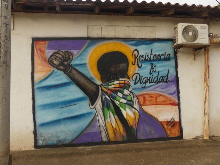 / A mural at the Aury Sará center. (Maxy Guez / Jacobin)