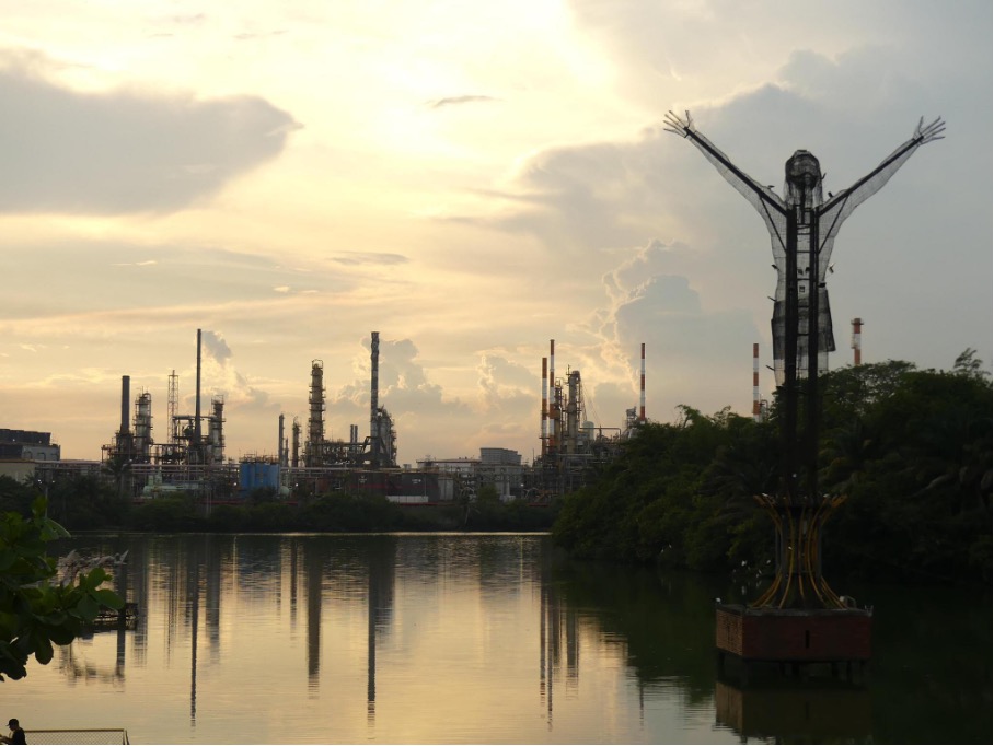 / ’Cristo Petrolero and the Barrancabermeja refinery. (Maxy Guez / Jacobin)